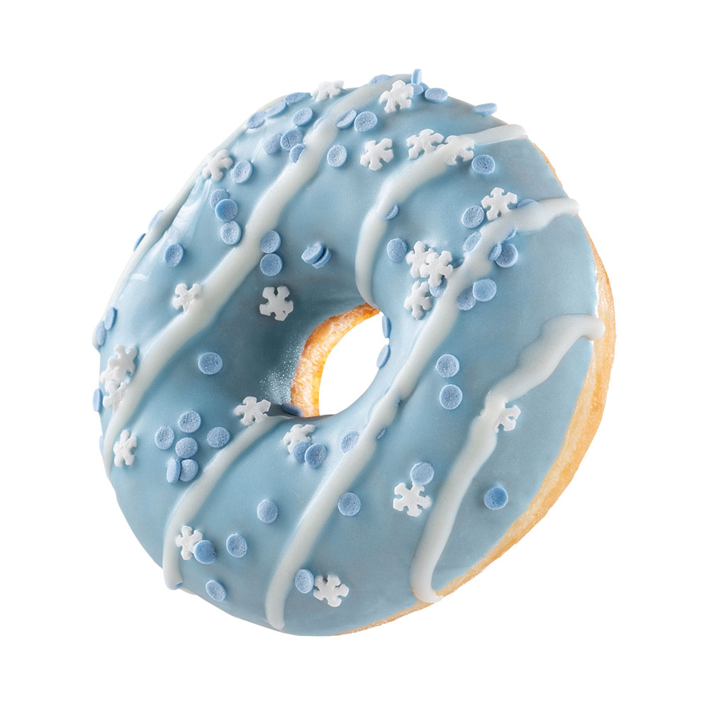 Impasto lievitato, rifinito con deliziose decorazioni dai colori invernali, a forma di fiocchi di neve. Una bontà pronta da servire