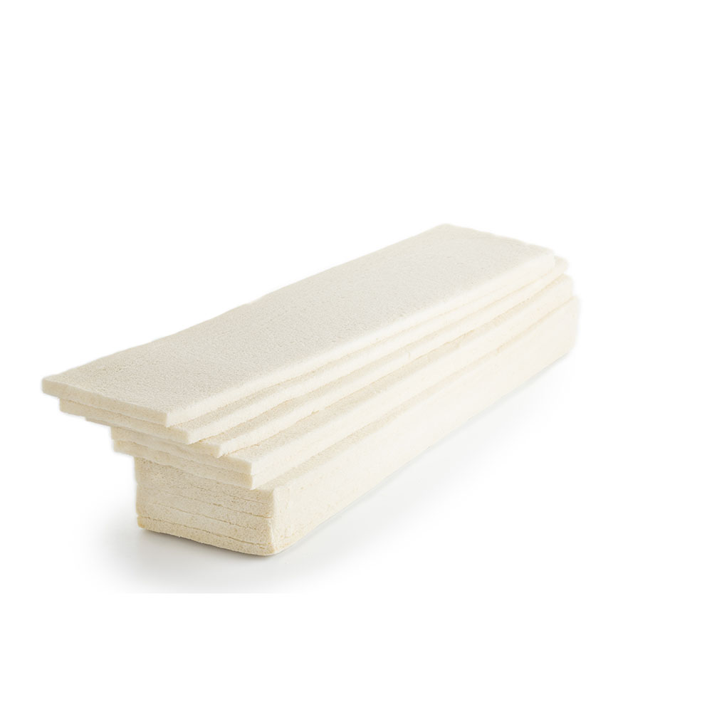 Lunghe fette di pane al latte, morbidissimo e bianco, senza bordi. La base perfetta per preparazioni a buffet.